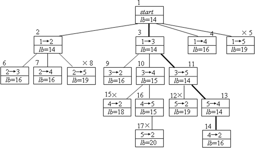 例:下界用限界求得14,上界用贪心求得是16,其他步骤同上